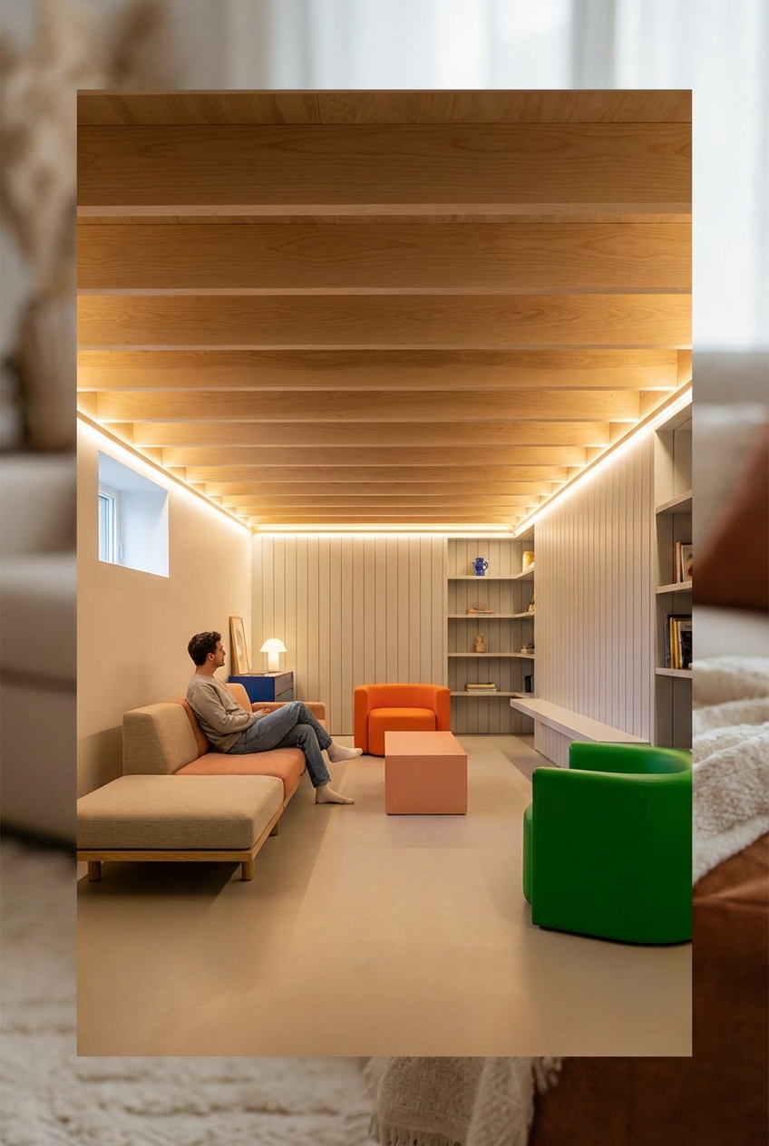 This design approach is for homeowners who are finishing a basement in a bungalow, a mid-century ranch, or a historic home where raising the ceiling isn’t structurally or financially feasible. It is also for those who want to turn their basement into a specific functional zone—like a home office, a gym, or a media room—without it feeling like a secondary storage locker.